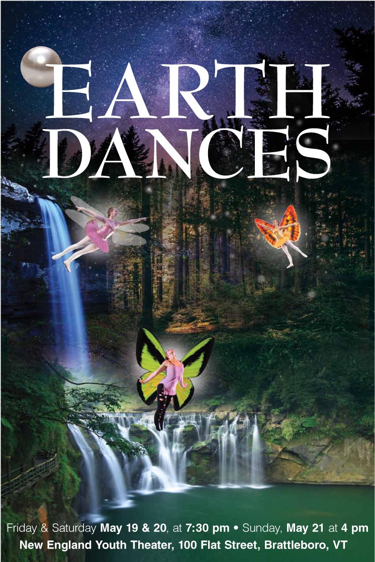 The Spring Dance Concert, Earth Dances, a fundraiser for the Company of Muses scholarship fund, which provides tuition scholarships for Brattleboro School of Dance students each semester, is coming this May 19 and 20th at 7:30pm and May 21st at 4pm. Purchase your tickets at BSD on Saturdays from 11am – 1pm (except May 20th) or at the NEYT Box Office Monday May 15 – 17 from 4-6pm or May 18th from 5-6pm. The NEYT box office also opens 1 hour before performances. You can purchase tickets online at EarthDances.BrownPaperTickets.com.
